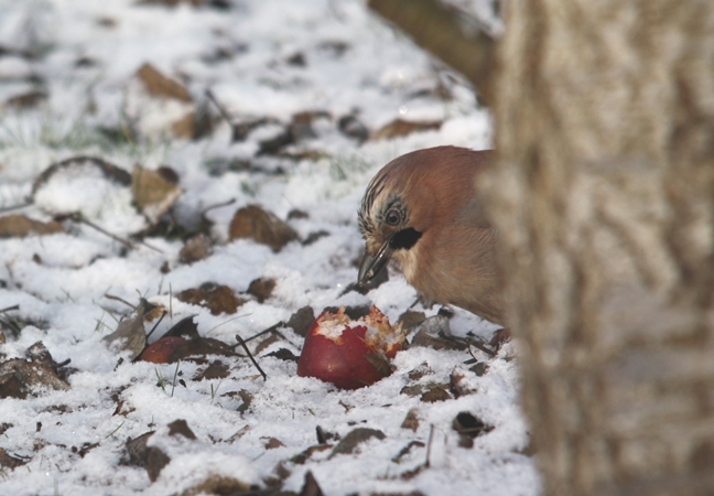 Sójka raczej w śmieciach nie grzebie i nie brodzi. W tym również odbiega od krukowatej braci. To nie jest typ "kloszarda", czy innego żebraka szukającego swojego szczęścia w trudnym okresie jesienno - zimowym na śmietnisku. To stworzenie przedsiębiorcze, przezorne i pracowite. Nie w głowie mu włóczęga, szukanie i myślenie w typie: aby się najeść dzisiaj, a jutro jakoś tam będzie. Sójki już jesienią myślą o zimie i kombinują, jak się najlepiej i najpewniej zabezpieczyć przed tą trudną porą roku. Szybko doszły do wniosku, że jeżeli dziś jest w lesie tyle wartościowego pokarmu i nie są w stanie wszystkiego przejeść, to warto porobić sobie odpowiednie zapasy na zimę. Na czas, kiedy zdobycie byle kęsa będzie graniczyło z cudem. I tak co roku sójki z zapałem jesienią organizują swoje spiżarnie i kryjówki, w których utykają swoje ulubione żołędzie , owoce buku, orzechy i inne specjały. Zagrzebują w ziemi, wciskają pod korzenie, wpychają w szczeliny drzew i gdzie tam jeszcze maja pomysł i fantazję. Jak najwięcej i jak najefektywniej. A że po kilku miesiącach o swoich niektórych tajemnych skrytkach zapomną to już szczegół. Przynajmniej będzie szansa, że kiedyś z tego "zachomikowanego" kąska wyrośnie potężne drzewo!